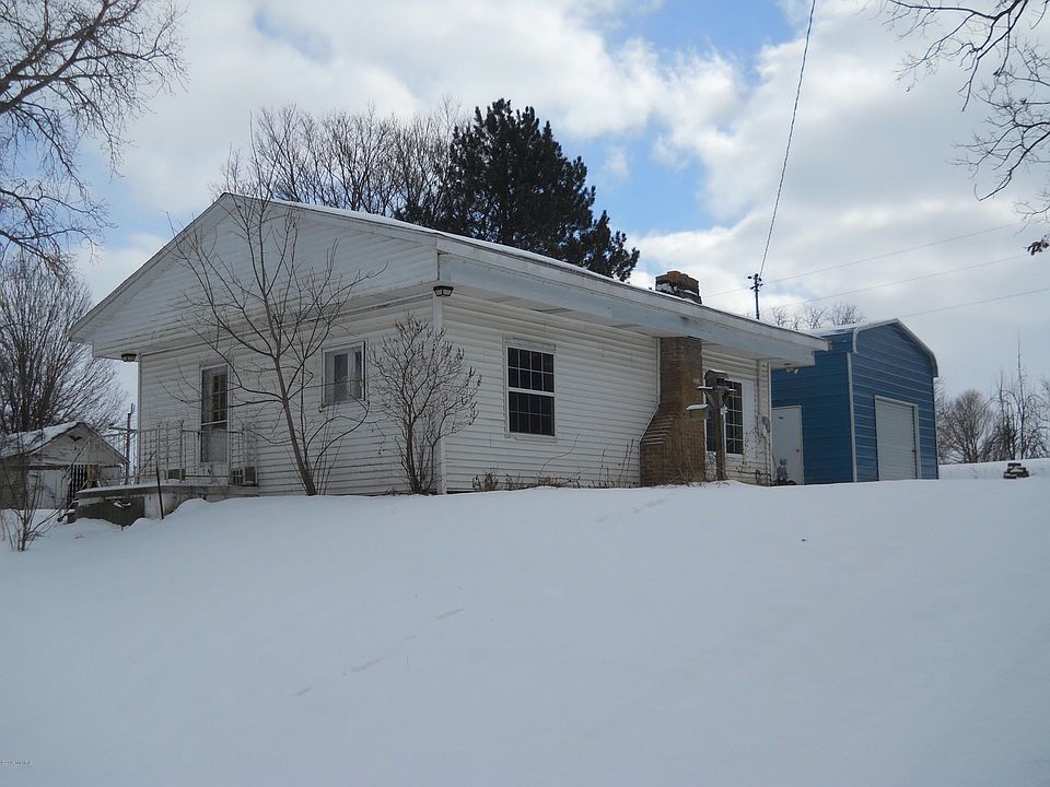 Great country location. This 2 bedroom, 1 bath home sits on 3 acres. The house will require some finishing touches. Most of the windows have been replaced over the past few years. The electrical panel has been updated. A spacious yard and additional storage buildings. The garage is a newer all metal building. The sellers do not know if the older LP forced air furnace is functional and there is no LP storage tank currently on the property. All set up for Pellet stove (not included). There is an additional brick hearth if you would like to add a wood burning stove. This house is to be sold ''As is''.