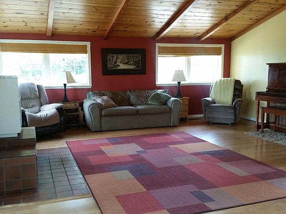Fabulous four bedroom, two bath home on close to one acre. Huge three car garage w/overhead loft. Loft space would be great for man cave, game room or artist studio. Home is open and airy with large bedrooms and vaulted ceilings. The open beam ceiling in the living room makes you feel right at home. Paved circular driveway. Close to town yet in the County so the possibilities are endless. Original home was built in 1908 but has been remodeled over the years. Room for a horse or other farm animals.