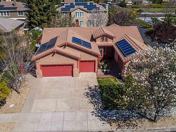Desirable single story home on a corner lot with paid in full solar panels. Beautiful hardwood floors throughout main living area. Large eat-in kitchen with lots of counter space, cabinets and tile floors. Stainless steel appliances include a Decor gas stove and Thermador oven. Den/Office with glass french doors. Master Bedroom and bathroom with large walk-in closet. Laundry room has a sink. Newer light fixtures throughout. Cat-5 in all bedrooms. Backyard has a nice patio and several fruit trees. Large 3 car garage. Home warranty included.