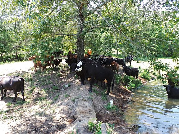 Now here is a quality cattle farm and / or horse ranch and / or hunting retreat that has the upper parts of Water Creek running through it for over 1 mile---has approximately 60 acres of pasture, approximately 20 acres of which is bottomland, and approximately 40 acres of native pasture with the balance in mostly hardwood timber. Located at the end of a county-maintained road, this property is tucked away nicely for the ultimate in seclusion with your own little corner of these Ozark Mtns-----and thereby the wild game is abounding!! It has some small springs which feed the upper parts of Water Creek and is scattered around the 241 acres for the livestock as well as the deer, turkey, wild boar, etc. 1,000+ sq ft. home/cabin has 2 bdrms, 1 bath on a concrete slab with 12' X 36' front wood deck. Well for water and 1,000-gallon concrete septic tank. Here's that "escape from the world" property you've always dreamed about owning. Priced @ $445,000.