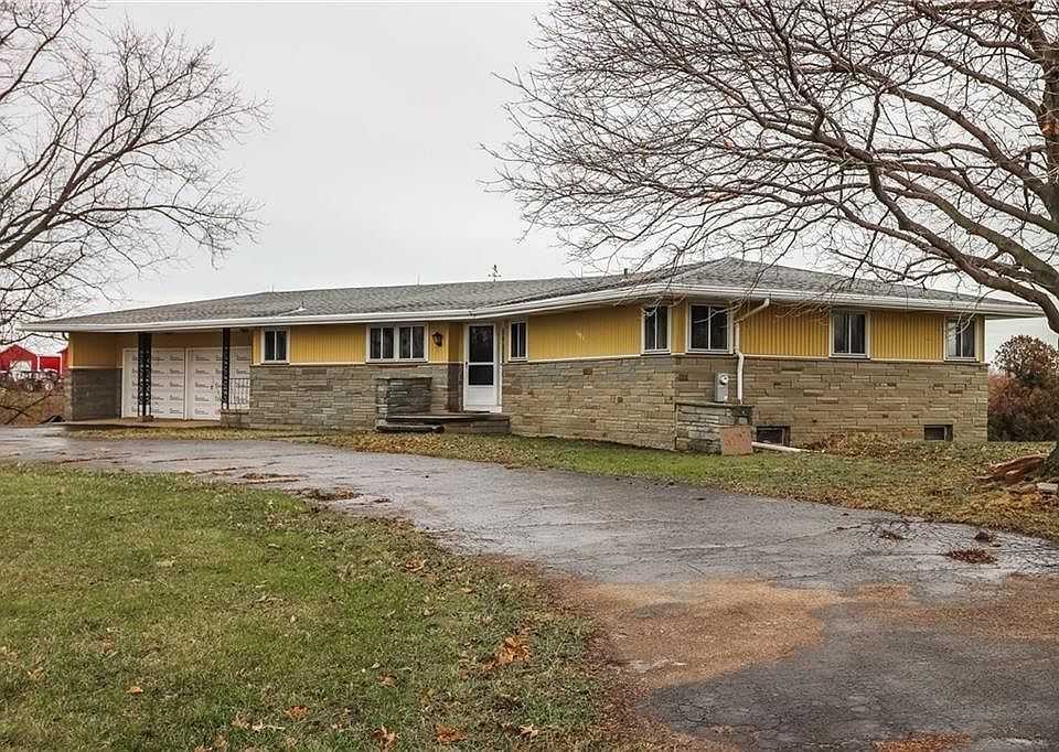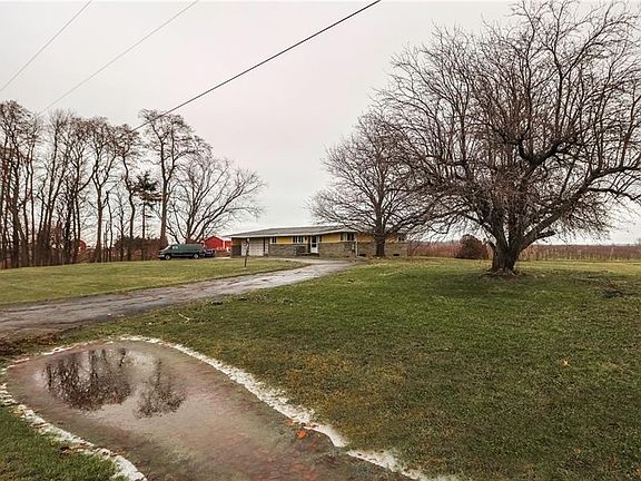 Sprawling 3 bedroom 3 bath ranch just over 2 acres that backs to apple orchards. First floor has large kitchen with granite counters, formal dining room, master bedroom with master bath, 2 additional bedrooms, great room with cathedral ceilings and fantastic views and an additional room that could be an office, den or 4 bedroom. The lower level is partially finished and has a walk out to an unground pool. There is a wood stove for aesthetics and supplemental heat. Property has been vacant for approx 6 months. The pool not been used in years and the seller does not warrant that it works. House has been winterized. There are a few unfinished projects. Tremendous potential for sweat equity. Square footage posted does not include walk out lower level.