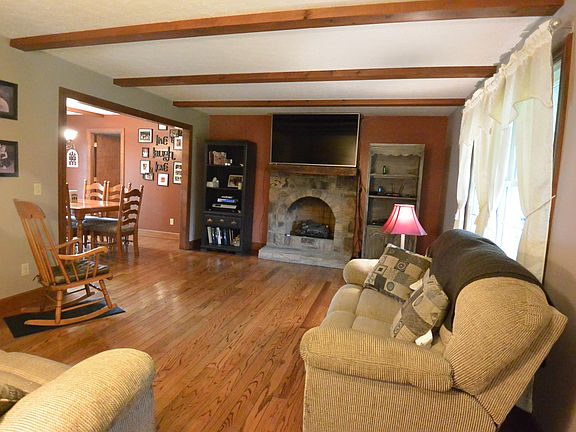 What a property! 3/4 Bedroom 2.5 bath home on 4.56 acres, half wooded and half open and a stocked .25 acre heart shaped pond readyfor your love of fishing! The kitchen features plenty of workspace, custom lighting and all appliances remain. Venture over to the living room and seethe expansive front yard. Half Bath has a custom bourbon barrel sink! The 4th bedroom could be used as a family room instead of a bedroom. Homehas an on-demand hot water heater, shaded back patio, and much much more. Do not delay on seeing the property, it wont last long!