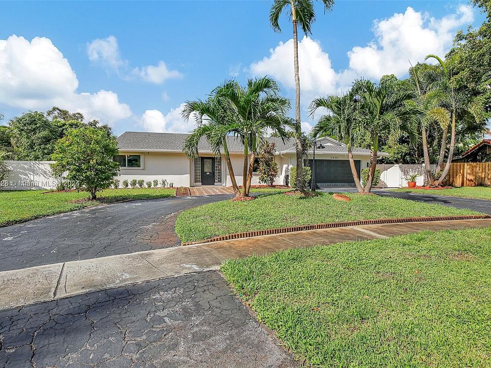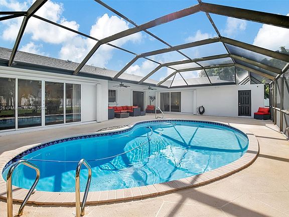 Just under 2300 sqft of oversized living space in this move in ready 3/2.5 on an expansive 18k+ sqf lot w/new roof. Complete hurricane protection w/most being impact, but all having accordion shutters. Tastefully remodeled w/an updated kitchen featuring quartz countertops, tile backsplash, white cabinets w/black hardware, s/s appliances & coffee bar overlooking the spacious family room which features updated wood look tile. Large primary suite w/dual barn doors w/one leading to the exquisitely redone primary bath featuring dual sinks & step in shower, & the other to your walk-in closet. Big secondary bedrooms w/luxury laminate flooring. Redone half bath & laundry room. Step outside to your screened in pool & Enjoy the fresh fruit from your lychee & mango tree with space to park a boat.