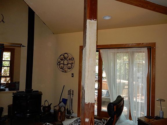 Charming custom home near Willow Creek & Trinity River with open floor plan and vaulted ceilings. Open floor plan for this 1 bedroom (potential for 2nd bedroom), 2 bath, open beam custom vaulted ceilings, skylights & windows utilize natural light, recessed lighting throughout, tiled bathrooms, use of wood throughout home. Seller is in the process of cleaning up property. Outbuilding, deck & old hot tub in back yard. Finishing touches will need to be completed by new owner. Must see property with motivated seller. Sq ft & acreage are as per county and should be verified by buyer.