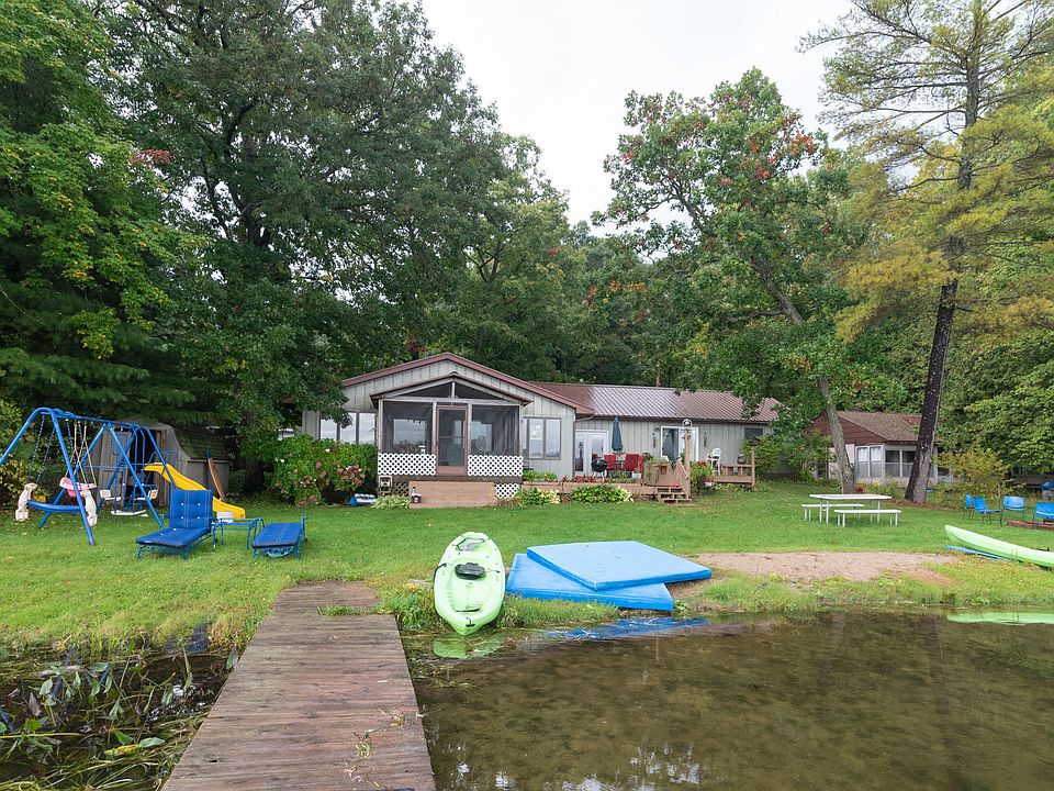 1491 Shady Ln is a lovely home with metal roof, attached garage, scenic frontage on all-sports Turk Lake and a pole barn/workshop! The open layout with a large entryway and plenty of closet space is a great area to come in with groceries or to dry off from fun on the lake! There's a vaulted ceiling with tons of natural light in the dining and living room that leads out to a screened in porch and the deck. This home also has a spacious kitchen, cozy den, 3 bedrooms (one is currently being used as a large laundry room), and 1.5 baths. You will love the large master bedroom with walk in closet! Two parcels and .47 acres, you won't want to miss this property!