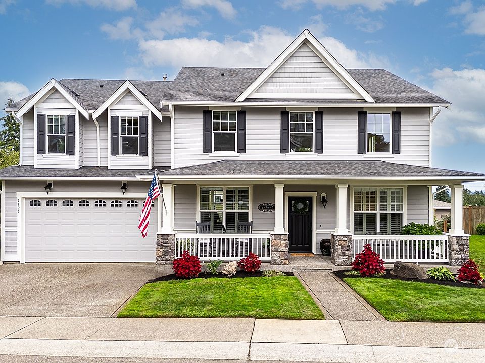 Gorgeous custom-built home with stunning views of the Black Hills & Cascades from nearly every window! Fabulous curb appeal, sweeping covered porch & meticulous landscaping! Soaring ceilings, plantation shutters & crisp white millwork grace the formal living & dining rooms. Kitchen boasts abundant cherry cabinetry, granite tile counters, SS appls, dbl fridge, w/in pantry open to nook & family rm w/slider to back & side yards. Peaceful Primary Suite offers spectacular views & dreamy bathroom w/dual vanities, soaking tub, w/i shower & grand w/i closet! Sizable loft/bonus rm! Move-in ready w/solid hardwd flrs, new carpeting & interior paint, newer ext paint & water heater. 3-Car tandem gar w/great blt-in storage! Prime location in Tumwater SD!