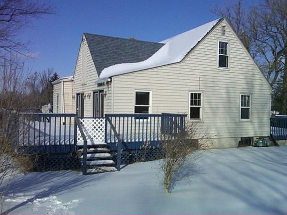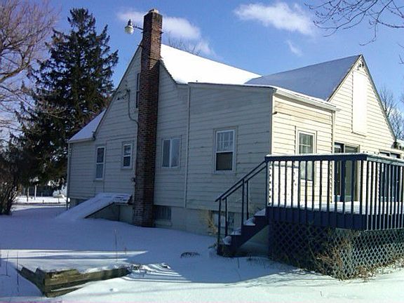 Exterior Features: Two story beige home has asphalt shingle roof, wood/vinyl exterior wall needs some work. Home has good curb appeal, patio in front, overall looks to be in fairly good condition. Interior Features: Seems to be in fair condition, living/dining is carpeted, which needs cleaned, ceiling has some water damage, room looks fair. Kitchen looks fine, tile backsplash, cabinets, sink & dishwasher present. Bathrooms appear fine, appliances are in place & in good order. Beds have carpet, ceiling fan, walls look clean. Brick basement has hot water tank. Home needs some cosmetic repairs but has nice potential.