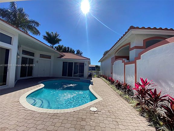 Lakefront courtyard style house, on a cul-de-sac, swimming pool, upscale design high ceilings spacious three bedrooms two bathrooms two-car garage, great private design to entertain, in desirable Grand Palms Golf community, 24 hours guard-gated community, children playground, homeowner's association provides alarm monitoring, TV cable with DVR (fiber optic available), lawn service, patrol, swimming pool service included, excellent location very close to access I-75, shopping, dining, hospitals, parks, schools and more.