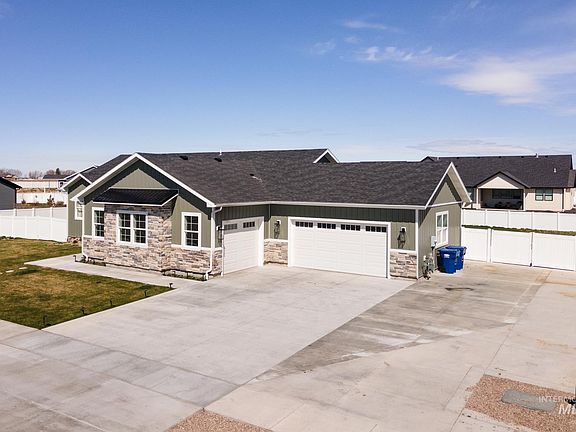 Welcome to this beautiful, custom built 6 bedroom, 3 bathroom home on a fully fenced, 1/2 acre lot a triple car garage wired with 220V, and RV parking! Boasting an open floor plan with lots of light, the living room welcomes you. The spacious kitchen has all white cabinets with granite counters and a huge granite center island that makes prepping meals and cleaning up a breeze, while the walk in pantry gives added, out of sight, storage space for additional appliances. The large dining area leads to a covered patio, perfect to BBQ and relax. Beyond the kitchen is the primary bedroom with accent wall and the gorgeously tiled bathroom has dual vanities, a soaker tub and walk in shower. Beyond the bathroom is a large walk in closet with built ins. The laundry room is accessible from both the master closet or the mudroom leading to the garage. Two more bedrooms