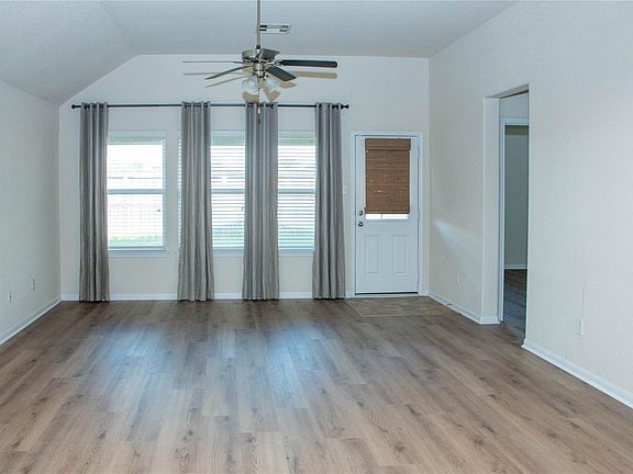 A beautiful one-story floor plan with three bedrooms & an additional room can utilize as a 4th bedroom/study room. Special details and features of home beginning with covered porch, large entry with home office room. Open space connecting the kitchen with breakfast bar and the family room. Private primary bedroom with a large walk-in closet and double sinks. A covered patio with a backyard gate leading to a vacant land with grassy. No Back Neighbor! Cy-Fair ISD, a community pool, a splash pad, parks, and a large number of sidewalks. Easy to access U.S 290 and Grand Pkwy 99. Minutes away to dining and shopping centers. **New vinyl wood floor. **Landlord will put in the fridge if tenants sign 2 year lease