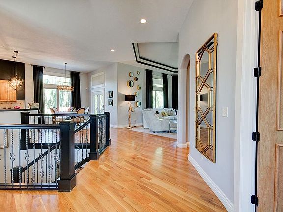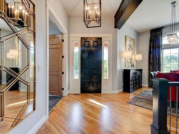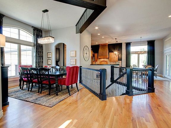 Nestled in the ever popular savanna neighborhood, this meticulously maintained and updated show stopper checks all the boxes! The home's immediate appeal from the road with its welcoming circle drive, attractive stone and brick detail, covered front porch with wide steps and beautiful landscaping designed by the popular local Tree Top Landscaping is your first glimpse at what all this home has to offer. Step inside and a professionally designed interior captures you with a style, elegance and little bit of fun too! The home features hardwood flooring through the open living space, large baseboards and crown molding enameled and designer chandeliers with pops of gold and black that are the perfect jewelry for the space. A formal dining makes entertaining and welcoming guests a breeze with a huge front window, gorgeous crystal chandelier and connected by a back hallway to the kitchen that tucks close by a wet bar so the host doesn't miss a beat either. The impressive great room has floor to ceiling double stacked picture windows that floods the room with light, custom drapery to the ceiling that adds to the elegance including a gas fireplace and beautiful enameled built-ins. Catch a glimpse of the chef approved gourmet kitchen which features tons of cabinetry with granite countertops and eat at bar, gas range, custom hood, double ovens and microwave tucked away in the small back passeway to the formal dining room and huge pantry. Large window and glass door leading to the covered back deck surround the breakfast nook that is much more than a nook and can accommodate a full size dining table or over 60" round table with designer chandeliers above the bar seating and table the kitchen shines! Conveniently located behind the kitchen is a study desk and office space where your computers, printers and mail can land and still be hidden to maintain a tidy kitchen counter space. Retreat to the primary en-suite bedroom and it's a wow! Again, huge picture windows with custom black-out blinds that are both light and energy efficient and can raise or lower to allow light in while maintaining the rooms privacy. Floor to ceiling custom drapes, beautiful enameled trim, ceiling detail with crown molding and color of the year deep blue walls, this room is sophisticated and simply gorgeous. Fahsholtz Construction recently remodeled the attached primary bathroom with beautiful white and gray tile, granite, two sink vanity and full tile walk-in shower with glass tile niche and shelf, adjacent walk-in closet with large built-in dresser, tons of hang space and shelves all enameled with pull down seasonal bars and the laundry room, one everyone dreams of with large windows to watch the kids play in the driveway through, wash sink, tile and closet with a door to close the room off to the rest of the house as well! The style and function continues in the lower level with striking and durable black marble-like epoxy flooring throughout, enameled trim, attractive focal whitewashed stone fireplace with black shiplap and built-ins in the main family room adjacent to a wet bar with sink, fridge and microwave perfect for movie nights! Oversized lower level basement bedrooms with huge walk-in closets in addition to a fun arcade room that is a bonus room that could also be used as an exercise room, toys, crafts- you name it! A full bathroom with 2 sink vanity is perfect for siblings sharing or guests alike. Large view-out windows flood the lower level with natural light and being a walk-out basement, let's take the party outside to your gorgeous backyard oasis! Executed to perfection, this finite pool with covered, diving board and attractive stamped concrete patio surround is the icing on the cake! The landscaping with a large berm and trees expertly designed Tree Top nursery takes this space to the next level. Irrigation well and sprinkler system in addition to backyard access to your three car garage are a few of the other items of the home. Andover school