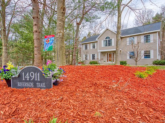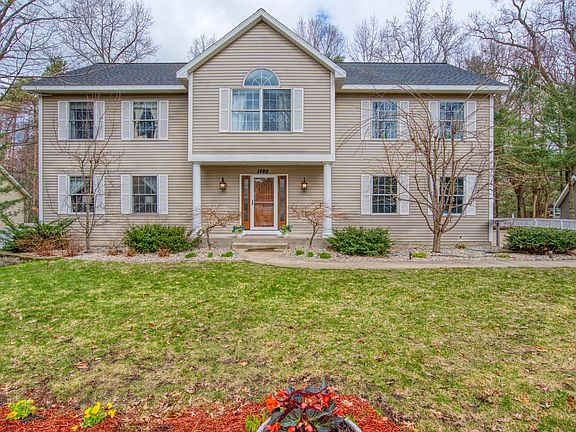 Spacious two story home with3 stall garage, 5 bedrooms, 2.5 baths and over 3,200 sq. ft. surrounded by beautiful wooded, hot tub, fire pit, play house with electricity & play set. Main floor has office/den with cozy gas log fireplace & the spacious great room has custom built-ins & bay window for lots of natural light. Kitchen has granite countertops, plenty of cabinet space, stainless steel appliances, snack bar & large pantry. Upper level includes Master Suite with walk-in closet & private bath with double sinks, 4 more generous sized bedrooms, convenient laundry & family room. Walk-out lower level has large rec room,, work out room & tons of storage.