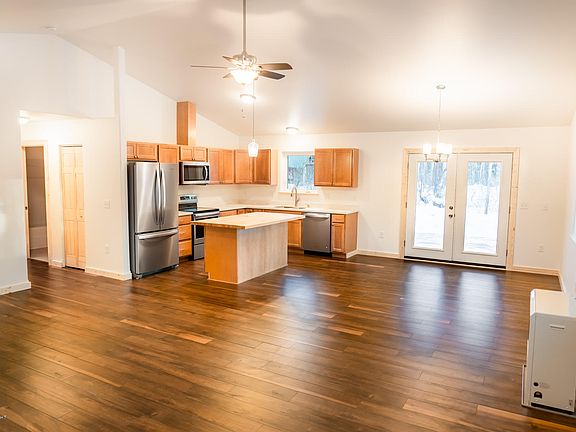 Newly constructed, single-story home with 5* energy rating, only a short distance to Talkeetna Lakes Park & downtown. Attention to detail throughout with open-concept living/dining/kitchen - incl. vaulted ceilings, butcher block island, maple cabinets & stainless steel appliances. 3 bedrooms, incl. master suite with 6 ft soaking tub and double vanity. Cedar siding and seamless gutters outside.