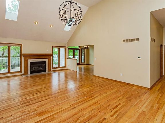 This lovely, well-cared walkout ranch sits on .33 acres backing to trees & a creek in a prime Clive location. Enjoy instant curb appeal w/ professional landscaping & brick front exterior. The great room features a vaulted ceiling, fireplace & natural light from over sized windows. The kitchen offers granite counters, abundant cabinetry & breakfast bar that opens to an eat-in dining area. An added bonus, the 4 seasons room w/ access to the two-tier composite deck & beautiful backyard views of mature trees & outdoor fireplace. Relax in a spacious master suite w/ vaulted ceiling, tile shower, jetted tub, dual vanity & walk-in closet. Two addtl bedrooms share a full bath, formal dining room & laundry round out main level. A finished lower level walkout has huge family/rec room w/ fireplace, wet bar w/ mini fridge & dishwasher, 4th & 5th bedroom or flex spaces, updated 3/4 bath & tons of storage space. An entertainer's paradise w/ amazing outdoor living in a family friendly neighborhood!