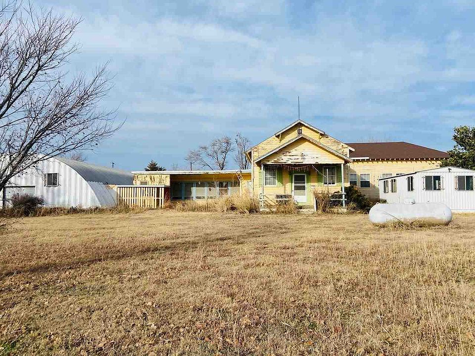 This property is 1.5 miles from I-35. It has been vacant for years. Electric & water are on. Pickup-cleanup will be required. Spacious metal shed has some deterioration with fallen insulation. Water has been shut off at street due to leak (Service is active). It has a ventless heater. Propane gas for heat & water heater. Utilities: Kay Electric Cooperative & Blackwell Rural Water. All appliances in unknown working condition. This property selling in "AS IS" Condition with no warranties expressed or implied.