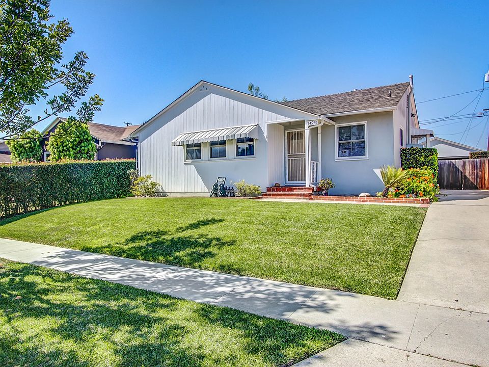 Charming and Inviting home located mid-block on a quiet street in the highly desirable Hawthorne neighborhood of Bodger Park. With 1,233 square feet of living space, this home boasts 3 bedrooms and 2 bathrooms and has natural light throughout. Inside the home are three good sized bedrooms, an open living/dining area and a spacious kitchen with plenty of cabinets. 2 bedrooms including the master have natural hardwood floors and there is fresh interior paint throughout. The master bedroom has a private bathroom and laundry room. Dual pane windows throughout. The beautifully landscaped home is situated on a large lot with a comfortable patio for entertaining and a manicured green yard. There is a nice driveway with a gate to park multiple cars. Detached two-car garage with a sectional door. Centrally located to schools, shops, El Camino College, the 405 Freeway, and less than 5 miles to the beach, this is the one you have been waiting for. Lowest price home in Bodger Park, needs a little TLC. Will not last. Sold as is!