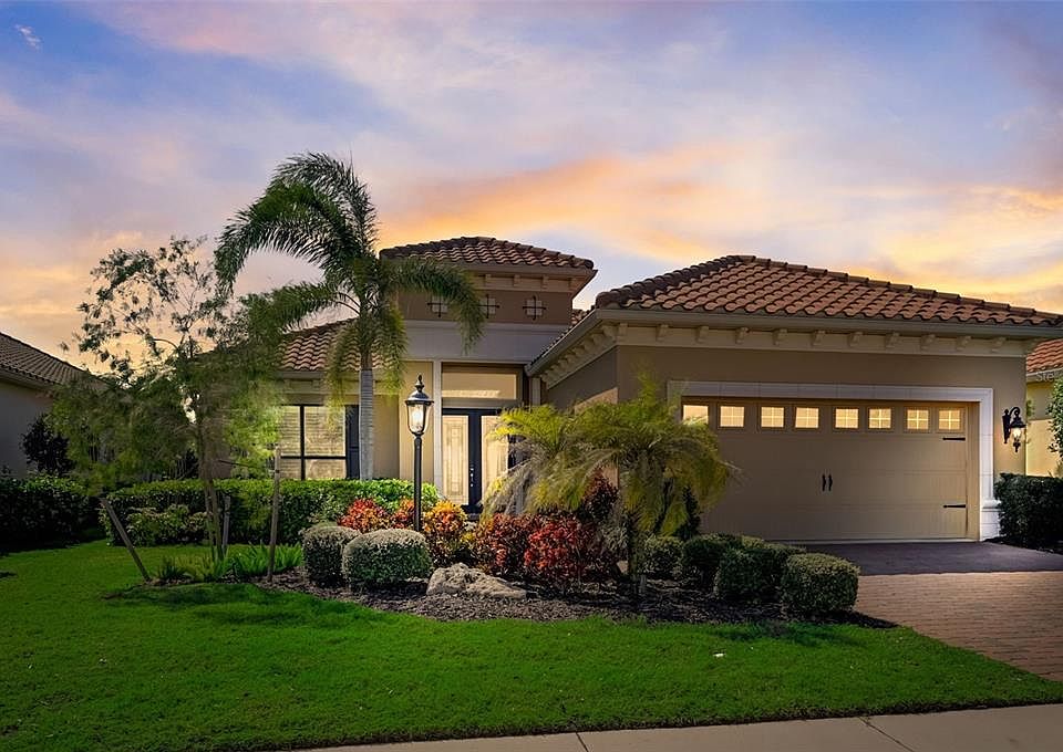 This stunning Neal Signature home in Country Club East’s Highlands neighborhood offers luxurious living with its 3 bedrooms, 2 bathrooms, and a host of impressive features. As you enter through the double glass doors, you're greeted by a wide hall entry, volume ceilings, and light-filled living spaces. The main living area boasts tile flooring, while the bedrooms feature wood flooring, with no carpeting in sight. The formal dining area is adorned with elegant wallpaper and built-in cabinets, perfect for hosting guests. The kitchen is a chef's dream, with granite countertops, cabinetry with pullouts, a large island with storage on both sides, built-in appliances, a gas range, a pantry cabinet, and a dinette area with an aquarium window. The great room is a focal point, featuring a stacked stone TV wall with a fireplace and a built-in wet bar with a wine fridge. Pocket sliders open to the screened-in lanai, which boasts an outdoor kitchen and a private pool and spa, perfect for outdoor entertaining.The primary suite is a retreat in itself, with a double door entry, tray ceiling, sitting area, two walk-in closets, two separate vanities with quartz countertops, and a walk-in frameless shower. The laundry room offers a utility sink, quartz counter, and cabinet storage.The garage is air-conditioned and features custom flooring. Additional features include landscape lighting, motorized hurricane shades, a tile roof, and crown moldings. Enjoy southern exposure and serene green views of the 6th hole of Lakewood Ranch’s Royal Lakes golf course. Country Club East offers gated security, two resort pools including the retreat aquatic center, a fitness center, and a club room with billiards. Optional memberships are available at Lakewood Ranch Golf and Country Club. Located near world-class shopping, dining, and entertainment at Lakewood Main Street, The Green, University Town Center, and downtown Sarasota, this home is also just minutes to I-75, beaches, great schools, and medical facilities. Experience the best of Florida living in this exceptional home.