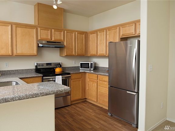 Beautifully updated, corner, ground floor unit with 2 bedrooms and 1.75 baths! Great layout w/ new carpet, large living room w/ FP, dining room. Kitchen with granite countertops, new SS appliances. Master suite w/ walk-in closet, updated granite & double sink vanity. W/D, Patio. 1 car garage across the hallway from unit for easy access. No stairs! Well maintained community w/ club house, exercise room, walking distance to shops and restaurants, Close to Mill Creek Town Center, I-405, I-5, & 527.