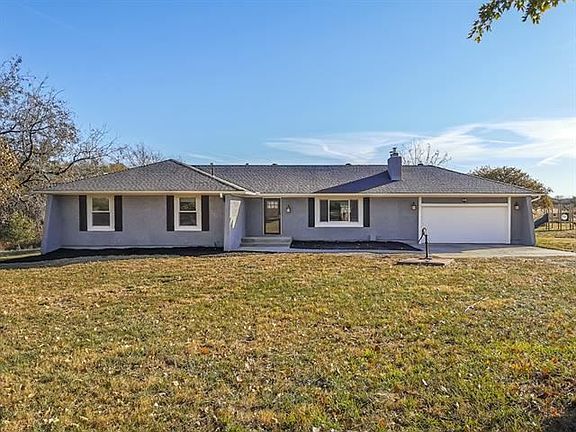 Johnson County 20-acre farmstead with 5 Bedrooms (2 are non-conforming) 4.5-baths/2-car garage is just minutes outside of Olathe/Eudora/DeSoto. The property has several out buildings, beautiful pond & spring-fed stream on the land. Spacious Main Floor Open Concept features the Great Room with Stone Fireplace & Built-ins. Kitchen with Large Granite Island, SS Appliances & Dining Area with Slider to the Deck that overlooks the Pond and Pasture. Master Bathroom with large walk-in multi-head shower & double vanities. Spacious Walk-in Closet with washer/dryer hook-ups. Master Bedroom has direct access to the Covered Deck. Main Floor Secondary Bedrooms with Private Baths. Lower Level Rec. Room with Brick Fireplace, Wet Bar, Full Bath and 4th & 5th non-conforming Bedrooms. Work Room with walk-out to rear yard. New Built-in Oven plus Cooktop. New Propane Tank, Propane Furnace. New Sidewalk & Refinished Porch. Value is in the acreage. Tax records show Eudora as city but located more in DeSoto. NOT Douglas County. Country living with stunning views, peaceful setting & gorgeous stargazing.