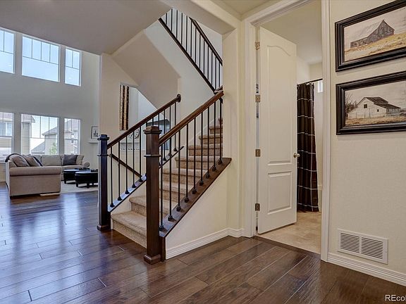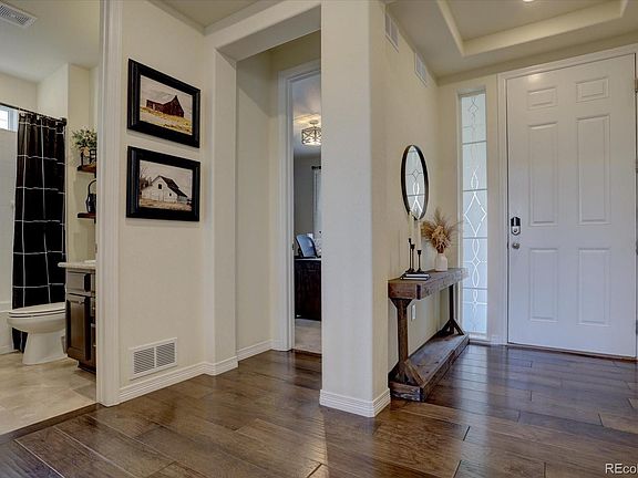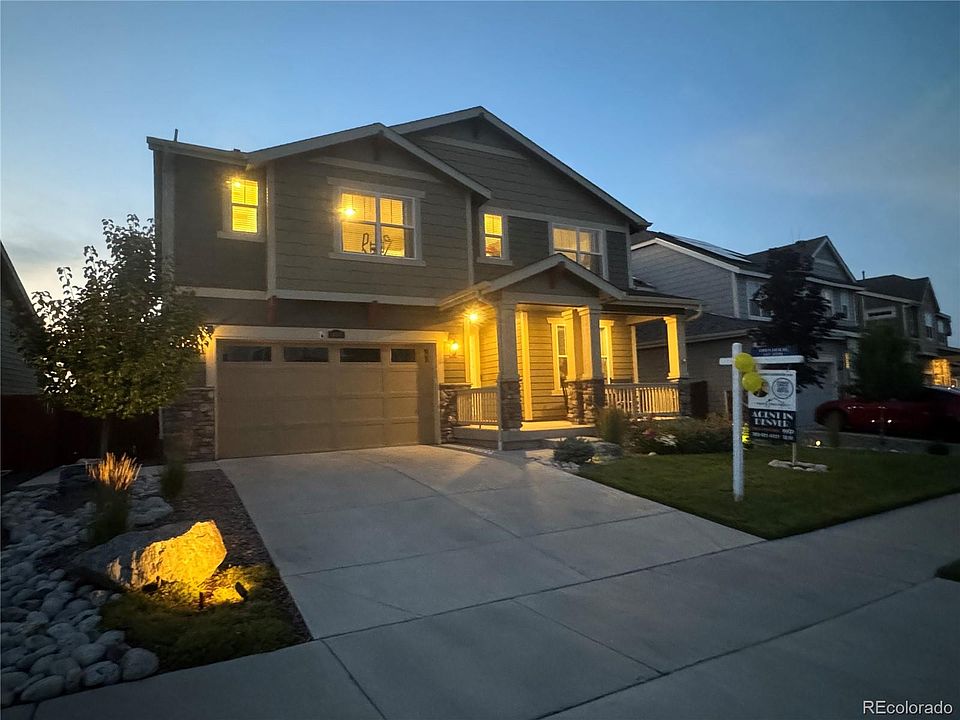 Great Sierra Ridge home with 5 bedrooms, 4 full bathrooms, 3 car tandem garage with epoxy coating and overhead storage. Amazing entertaining space inside and outside. You will love the covered and extended composite deck with extra seating. Relax in the hot tub and enjoy the Colorado seasons. The main floor has a great room with 18’ ceilings and a gas fireplace, spacious kitchen features stainless appliances, granite island with plenty of seating, large walk-in pantry, large eating area, mud room, pocket office with built-in desk, cabinets, storage, bedroom with a closet, currently used as an office, and full main floor bathroom. The second floor has 4 bedrooms. The grand primary bedroom has coffered ceilings, 5-piece bathroom, and dual walk-in closets. There is an ensuite bedroom with a full bathroom, 2 more bedrooms with a Jack-and-Jill bathroom. Enjoy the convenience of the upper level laundry room with shiplap, custom cubbies and shelving. This home is upgraded with a whole house water softener and reverse osmosis water dispenser, and solar panels. The custom landscaped, fenced backyard has a drip and sprinkler system in the front and back yards, and professionally installed lighting. This home is meticulously maintained and move-in ready! Easy and quick and easy access to I-25 and a 15 minute commute to the Denver Tech Center.