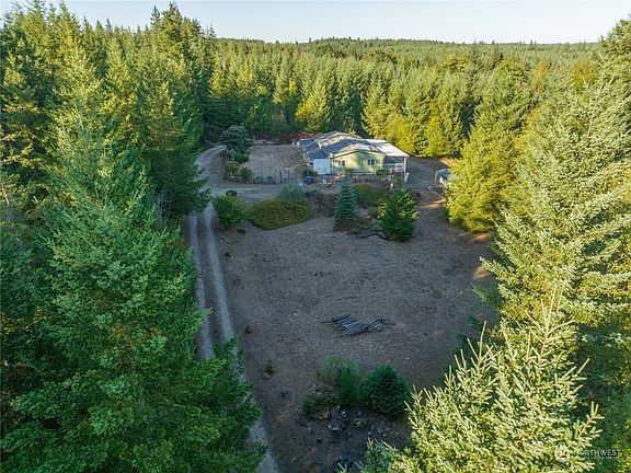 Seller selling AS IS. Buyer to verify all to their satisfaction. Square beautiful 10 acre lot located on the Pierce and Mason County border. Mobile home could use a little love but it sits upon a 4 car garage with additional covered parking from deck above. Do you have more toys or tractors? Take advantage of the carports and outbuildings this property has to offer. Have horses or like to hike?? Across the street is 40 acres of DNR property to explore. One of those outbuildings might make a great barn. Fantastically quiet spot. Decks and porches attached, likely this may be a cash only or land/construction loan. Be sure and read driving directions. GPS is challenging.