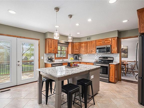 You are invited to take a look at this well-maintained and nicely updated two story home where pride of ownership shows. As you walk in, you are welcomed into the great room featuring a brick fireplace, built-in shelves, custom mantle, and wood floors. The formal dining room is perfect for family dinners and entertaining friends. The updated kitchen boasts quartz counter tops, subway tile backsplash, GE slate appliances, and a large island with space for four to eat. You will appreciate the built in drop zone for coats and backpacks. The first floor also offers a half bathroom and the laundry room. Upstairs, you will be impressed with the primary bedroom featuring a beautiful accent wall, tray ceiling, and a walk-in closet with heated floors and custom closet organization system. The primary bathroom boasts heated floors, dual sinks, and an Onyx shower. There are three additional bedrooms on the second level, two have walk-in closets, and one has an upgraded closet organization system. The hall bathroom has been updated with a new vanity top and flooring. The lower level is perfect for a rec room or workout space. There is an egress window, a built-in cabinet with opening for a mini-fridge, and it is roughed in for a bathroom. In the furnace/storage room, there are built-in workshop cabinets that stay with the house. Additional updates include: new hvac in 2024, new water heater in 2022, new front and back doors in 2020, and all ceilings are knockdown. Outside, enjoy the fully fenced yard and the newer deck shaded with a pergola. There is plenty of space in the yard to play and garden. The large cul-de-sac lot offers beautiful landscaping, mature trees, and a sprinkler system. The side-entry garage has upgraded doors, and a work area. The driveway was widened in 2016. The home has been pre-inspected for your peace of mind. It is conveniently located less than one mile from all three schools, and just a short drive to parks, grocery stores, and restaurants.