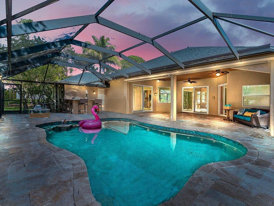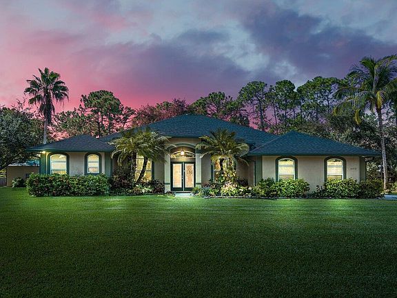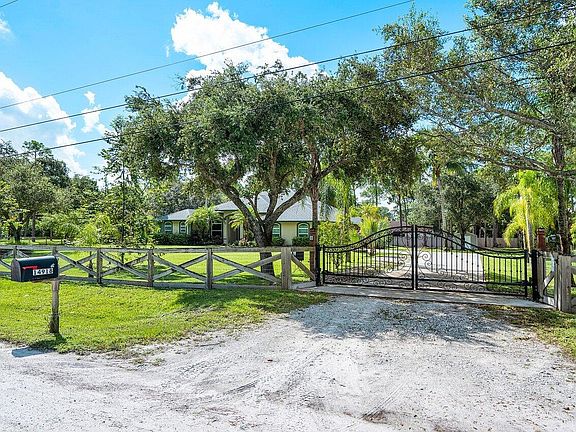 WELCOME HOME to a slice of country heaven! This gem features; (4) bedrooms plus den, (3) full baths, (2) car garage plus a 2018 shop, stunning salt water and heated pool, brand new 2022 roof, hurricane impact windows and doors, full house generator and defines a private paradise! And it gets even better, this beauty is tucked away on a quite dead-end street and resting on a premium 1.15 acre fully fenced lot and located in the MOST sought after area within The Acreage and only minutes away from just about anything your heart desires. ENTERING the elegant and convenient electric gate brings you into a private oasis where you are greeted by plush mature landscaping, concrete driveway, covered entry, double front doors, large foyer, 10' volume ceilings, pool view from virtually every room, an abundance of natural light and so much more! PASSING THROUGH you will discover an outstanding split floorplan and features such as; spacious kitchen boasting; 42" cabinets, newer Kitchen Aid stainless steel appliance package to also include double ovens, (5) person snack bar, pantry and breakfast nook. "And hello master suite featuring" pool and green space views, tray ceilings, his and her walk-in closets, 17'x12' newly renovated $56K bathroom presenting a deluxe soaking tub with dedicated tankless hot water heater, stunning his and her vanity, 5'x5' walk-in shower with rain showerhead, tile plank flooring and private water closet.You will also discover $5K in custom window treatments, Inlaw suite with full bath and private entry, quality flat wall construction, cabana bath, 6'x 8' under AC laundry room with newer washer and dryer, french doors, and design that is simply perfect! STEPPING OUTSIDE brings you to your very own resort boasting a grand and screened in outdoor space featuring; gorgeous travertine marble flooring, 33' x 18' lanai with a spectacular tongue and groove ceiling and roll down hurricane screens, sparkling 23' x 15' pool with a sun shelf, PebbleTec finish and conversation area with swim up bar, gas fire pit, large bar with built-in 2022 Napoleon grill and surrounded by a spacious 46' x 25' pool patio, private backyard, charming stone fire pit and plush mature landscaping such as: oaks, pines, palms, moringa tree, strawberry tree, dwarf mango tree, avocado tree, regular mango tree, two rainbow and eucalyptus trees. Simply, the perfect space for relaxing, family gatherings, entertaining like a rockstar and loads of outdoor fun! HELLO SAVINGS, PEACE OF MIND AND CONVENIENCE from the buried 500 gallon propane tank for pool, grill, patio fire pit and full house generator and extremely low homeowners insurance premium, full hurricane readiness, energy-efficient, well maintained, security system, Ring security camera, high-speed internet, whole house gutter system, no HOA fees, 2018 12'x20' shed, detached 30''x18' shop featuring; 541 sqft, concrete floor, 12' roll up door, (14.5') ceiling, 50 amp service, 110 electrical outlets and lighting, side entrance door and windows. LOCATION LOCATION LOCATION This beauty is tucked away in a superb yet quiet location with shopping and dining just around the corner and nine quaint parks with countless year-round outdoor activities such as; play grounds, picnic areas with grill pavilions, fishing, fitness trails, equestrian trails, football/baseball/Soccer fields, skate and equestrian parks, basketball/volleyball/racquetball, tennis and is located just minutes to everything one could possibly desire; Florida's Turnpike, I-95, Palm Beach international Airport, arts, entertainment, world class equestrian shows and facilities, beaches, theater, golf, business and economic development, education, green living and much more! COME AND SEE why The Acreage is very sought after and take in the fresh country air and peaceful sounds of nature. Build a guesthouse, chicken coop or plant a vegetable garden and bring your toys, pets or just about anything your heart could possibly wish for. Come and enjoy your life away from the hustle and bustle and your evenings around the fire or floating in the pool gazing at the stars. Run like your pants are on fire and be sure to check out the VIP buyer discounts on site!