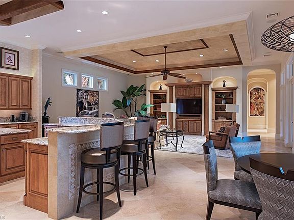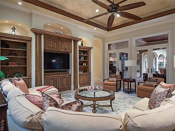 - Bar, Built-In Cabinets, Closet Cabinets, Coffered Ceiling(s), Custom Mirrors, Fireplace, Foyer, French Doors, Laundry Tub, Pantry, Pull Down Stairs, Smoke Detectors, Wired for Sound, Tray Ceiling(s), Walk-In Closet(s), Wet Bar, Window Coverings, Den - Study, Family Room, Laundry in Residence, Screened Lanai/Porch