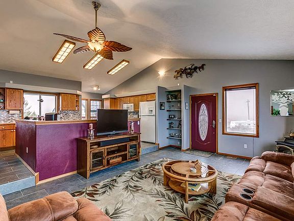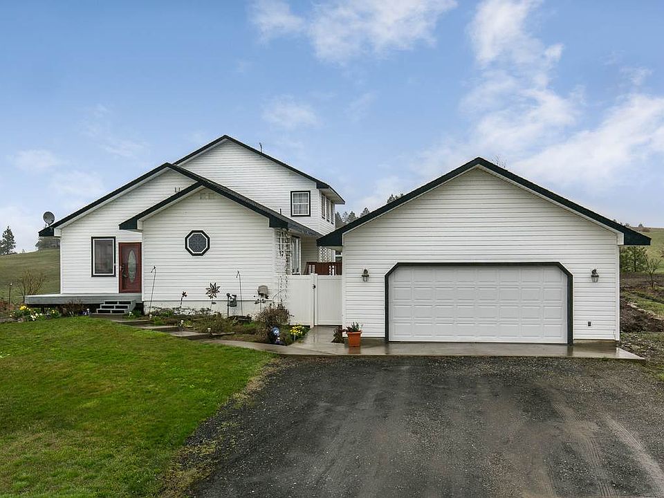Desirable home w/ 4.97 acres in the coveted Freeman School District. Complete with 60x80 SHOP+BARN+STUDIO w/ car hoist & bathroom. Enjoy this great room concept floor plan with 2504 sq ft, 4 large beds, 3 baths, cathedral ceilings, brand new carpet, large kitchen with gas range, gas fireplace, mud room, gas furnace + Central A/C + Hydronic heat in great room & high speed internet. Outside has 2 car garage, fenced back yard, fenced pasture & spectacular views & lots of privacy. Bring the animals & the toys!