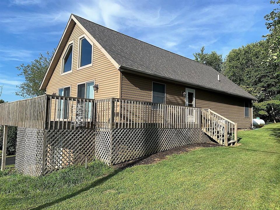 If at all possible come take a look when the sun is setting, what a spectacular view!! Quality built 3 bedroom 2 bath home with gorgeous view looking out over the neighboring farm and woodlands. Quality features of this home include oak trim and six panel doors, hardwood floors, 16' cathedral ceiling with large windows, newer roof and siding, 2x6 exterior walls and Anderson windows. 2 car garage under and large finished family room that only needs new flooring. The extra-large loft bedroom has a tremendous view looking out the upper level gable end windows. Located on Monroe Mills Rd gives easy access to state route 3 and 36 and just a quick trip to Apple Valley Golf Course. This is a very solid, nicely updated and well maintained ''lake house'' located in the premier lake resort Apple Val
