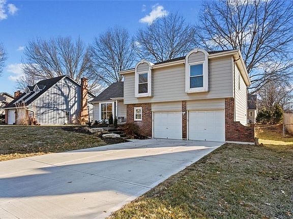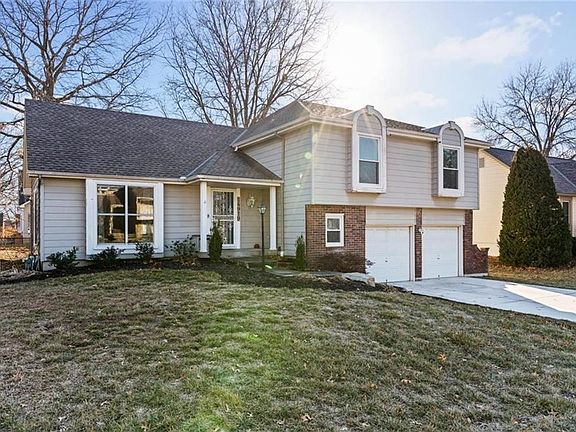 Great location with easy access to I-435, I-35, and K-10! Beautiful vaulted ceiling with wooden beams plus stone-veneer fireplace in living room. Newer Stainless steel appliances + plenty of cabinet space in the kitchen. 1/2 bath + laundry room on main level off the kitchen. Upper level features 4 bedrooms and 2 bathrooms. Primary suite has double closets and its own bathroom. Lower Level is partially finished with a rec room and wet bar. Two nice-sized patios in fenced backyard!