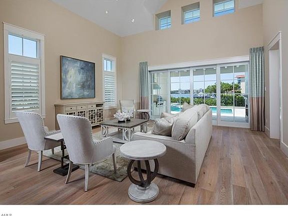 Old Florida charm, with features discerning owners require in this move-in ready, custom-built residence. Spectacular unobstructed waterfront views day & night from this Southern exposure home. There is no comparison for new waterfront construction under $3 million that includes a covered boat slip. The main single story living area offers superb interior finishes w/ 3 ensuite bedrooms plus a powder bath. A separate guest suite is located above the garage w/ a private entrance. The great room with a vaulted ceiling overlooks the pool/spa and waterway. The kitchen features a Wolf cook-top with natural gas , a Sub-Zero refrigerator/freezer, with custom Ruffino cabinets surrounds the kitchen, center island, and the wine bar that includes a wine refrigerator. Additional features include Crestron lighting system, Bella Citta wide blank wood floors, wood shutters on all windows in the main living room. The sliding glass doors leading to the pool/patio pocket completely out of site, then with the electric roll down screens on the patio, your living area is expanded to enjoy all of the outdoor waterfront beauty. Interior furnishings by Baer's.