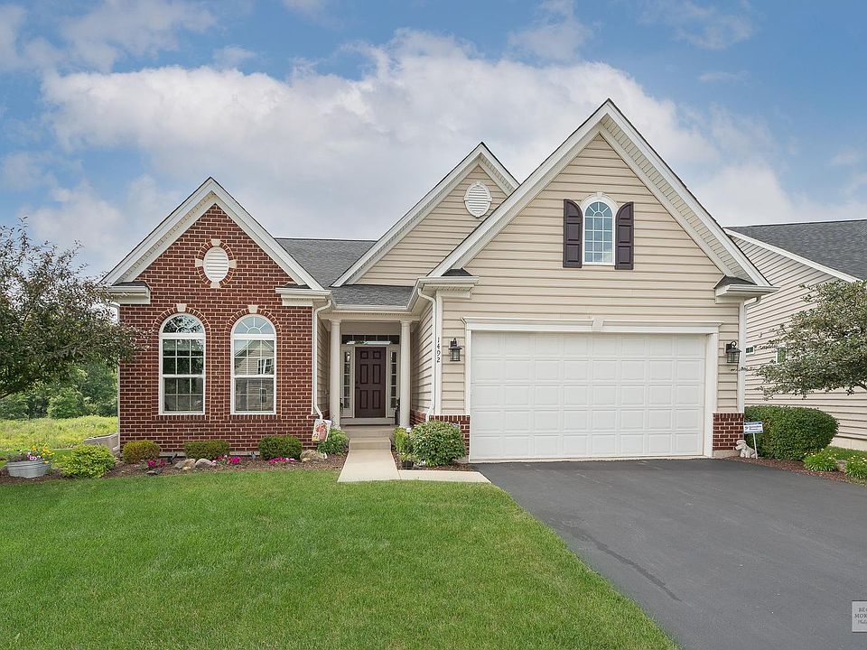 STUNNING HOME IN STONEGATE WEST WITH WATER VIEWS!!! Popular Expanded BRENTWOOD Model with Look-out Basement! Open Concept Floor Plan with Expanded First Floor Master Bedroom Suite. Three Bedrooms with Three Full Bathrooms. Gourmet Kitchen with 42" Raised Panel Maple Cabinets, Granite Countertops, Stainless Steel Appliances with Upgraded GE Convection Oven with Lower Oven Drawer (2014), LG Side by Side Refrigerator (2019), and Ultra Quiet Bosch Dishwasher (2017). Island with Seating, Custom Backsplash, Pantry Closet and Recessed Lighting. Family Room with Vaulted Ceiling, Fireplace with Gas Starter and Logs, Overlooking the Pond. The Master Bedroom Suite has a Coffered Ceiling, Sitting Room, and Tons of Natural Light. The Master Bathroom has Dual Sinks, Walk-In Shower with Custom Enclosure and Dual Shower Heads, and Ceramic Tile Shower/Floors. The Master Bedroom Closet has Custom California Closet Design (Elfa Custom Design in Pantry and other closets). First Floor Office with French Doors, Crown Molding and Wainscotting. There is an Additional Second Bedroom on the First Floor. The Third Bedroom is on the Second Floor with a Private Bath. Laundry Room Washer/Dryer Stay. The Garage has Professional Installed UV Stable Plyaspartic Coated Floor (floor, stairs and vertices side curbs). Genie Garage Door Opener. Alarm System and TV Cable Prewired. Invisible Fence in the front and back yard - collar excluded. Premium Lot with Pond View! Custom Window Treatments Included. TV Mounts Stay. In the full basement the Water Softener is included along with the White Basement Cabinets - great for storage! English Basement with 9ft Ceilings. Stonegate West is an Active Age Targeted Community (Not age restricted). There is a community pool, clubhouse, and park. Low Assessments include: Lawn Maintenance, Shrub Maintenance, Driveway Sealing and Snow Removal.