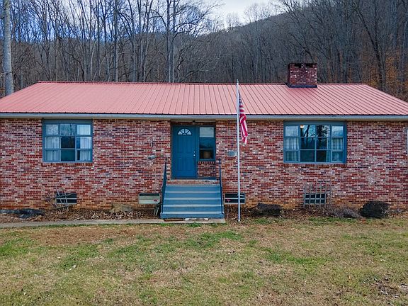 Brick 2 Bedroom 3 Bath home with metal roof and full basement on 6.5+. - acres of private unrestricted land including pasture, small creek, long range views, chicken coop and plenty of room for a garden. The perfect setting for a hobby farm or horses. Interior includes luxury vinyl and bamboo flooring, 2 fireplaces, gas logs, nearly new tile bath, back porch. Double garage in basement with workshop, bathroom and plenty of storage.