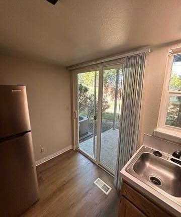 Discover your new home at the intersection of Fairview and Hartman, offering seamless freeway access. This elegant two-bedroom, 1.5-bathroom residence has been thoughtfully upgraded with modern amenities and features. The bathrooms are intelligently designed in a Jack and Jill style, while the bedrooms boast plush new carpeting and sleek laminate floors. Enhanced lighting and fixtures illuminate the space, creating a cozy ambiance complemented by a charming wood-burning fireplace. Your culinary adventures will be a breeze in the fully-equipped kitchen, featuring top-of-the-line stainless-steel appliances, including a refrigerator, dishwasher, and stove. The convenience of washer and dryer hookups is at your disposal, and additional storage space is tucked away on the back patio. Worried about parking? Rest easy, as this unit includes designated parking under a secure carport. Step right into a serene common area just beyond your door, complete with a grill and picnic table, perfect for entertaining friends and family. The property is cocooned by majestic, mature trees, and all landscaping needs are taken care of for you. Pet lovers, rejoice! This unit welcomes cats and small dogs (subject to approval via petscreening.com). Stay cozy with gas heating and enjoy the comfort of forced air. The master bedroom boasts a spacious walk-in closet, and every window is adorned with 2-inch wood blinds, sliding screens on the back door, and ceiling fans with individual remotes. Convenience is key, as this unit is conveniently located near shopping and entertainment options. At $1,395 per month with a matching security deposit, this incredible living space is a steal. Don't miss the opportunity to call this pet-friendly oasis home. Apply now!