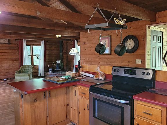 Good things do come in small packages! This 1 BD 1 BA log cabin is warm & inviting w/ open Beams & floor plan. Wood burning stove, kitchen island, S/S appliances, pantry, laundry room & mini split unit. Spacious bedroom w/ walk in closet & bathroom. Covered front porch & outdoor decking to enjoy the peace & tranquility. Privately nestled on 1.09 unrestricted acres of level terrain, branch, gardening area, firepit & fiber optic. 20x40 workshop/outbuilding w/ electric. Own your own piece of paradise in the NC Mountains. Being Sold As Is