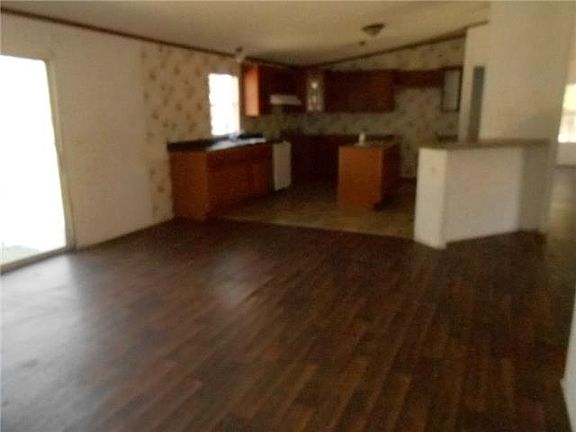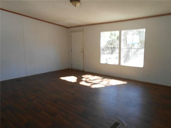 Secluded setting at the end of a private, rock drive. The drive is apparently shared with another mobile home. A large wooden gate hides the property. The property is surrounded with large trees. The house is very large and the rooms are all spacious.This home would be perfect for a large family with room for recreational 4wheeling.The property has plenty of tall trees and would be perfect for hunting, trail walking, or just loving country life.