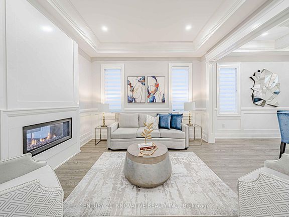 2y old luxury home on premium 50ftx218ft lot on one of Pickerings most sought-after streets.Approx 6,000sqft of living space, this home redefines luxury with meticulously designed interiors & exceptional craftsmanship.Equipped with 6 security cameras,inbuilt main-floor speakers, Elegant finishes thruout - panelling, coffered ceilings, tiled floors,rich hardwood floors on main & upper floors & laminate in the entire bsmt. 4 fireplaces.4 large bdrms, each w/own walk-in closet & private ensuite bthrm.Master bedroom features 2 oversized closets,fireplace&private balcony. Gourmet kitchen w/ top-tier built in stainless steel appliances,quartz countertops, B/I coffee machine, spacious center island, Custom hood fan. Magnificent family room w/ 20 feet cathedral ceilings & abundance of natural light streaming through its impressive oversized windows. Enhanced w/custom millwork, coffered ceilings, & a cozy fireplace. The main floor also includes a dedicated home office & a grand entryway w/custom tiles thruout. 2nd floor includes a skylight, cozy nook & separate laundry.Massive&stunning upgraded backyard oasis w/ stylish patio & tons of privacy. 3-car tandem garage w/expansive driveway.Park up to 10 vehicles, with an upgrade of 2 additional spots.Fully finished basement w/separate entrnce, 2 bdrms, kitchen, laundry & 3pc bath ideal for a potential in-law suite.Impeccable high-end laminate floors & 9ft ceilings in bsmt. Additional room that can be a 3rd bdrm/home office.Prime Location:nestled in one of Pickerings most prestigious neighborhoods - the perfect balance of luxury and convenience. Enjoy proximity to schools, beautiful parks,shopping,dining,easy access to major h/ways for seamless commuting! *EXTRAS* All furniture included! Top of the line B/I Appliances: main floor Fridge,Wall Oven,Microwave,Range,DW,CoffeeSystem, Under counter Beverage Center,Washer,Dryer.Bsmt Fridge,Stove,DW,Washer,Dryer,Microwave Hood. Tarion Warranty Included.