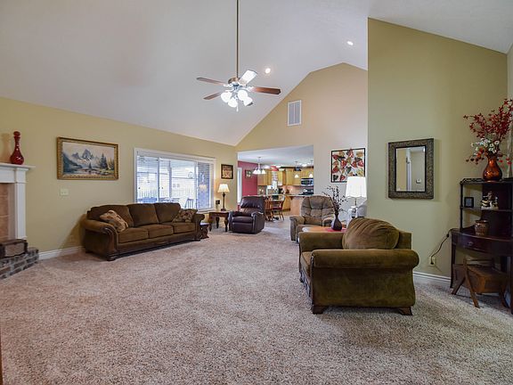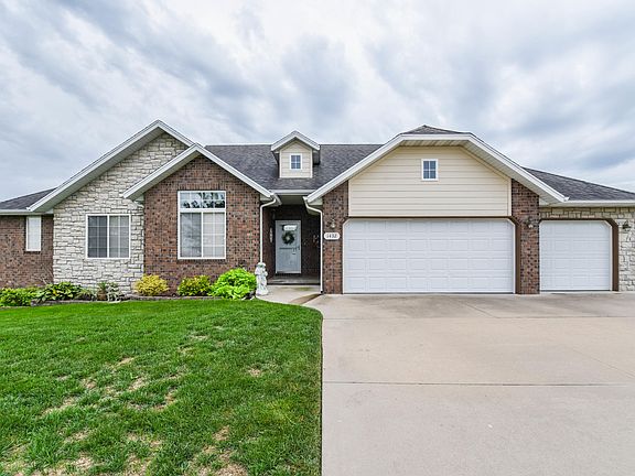 Baby, its cold outside! Call/text Kristi 417- 860-3916 for a showing. Prepare to be impressed with this spacious and well maintained ALL BRICK 3 Bedroom, 2 Bath, 3 Car Garage home. The garage is deep, no worries parking a truck inside. Large windows bring natural light into this open floor plan living area with vaulted ceiling, & gas brick fireplace. The open kitchen has beautiful cabinetry, granite counter tops and island that can seat 3 bar stools. The Master Suite is huge complete with Jetted tub and walk-in shower. You will love the walk-in closet. This home has a fire alarm system to keep your family safe. Relax on the large covered deck that overlooks a garden area and beautiful flower beds. Privacy fenced backyard, has reinforced double gate for easy backyard entry and newer storage shed will remain. See this home today.