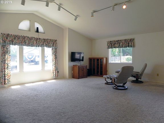 One-level home with 5-car garage/shop (extra deep) + 2 gated RV parking areas! Inside you'll find vaulted ceilings, central vacuum, skylights. Master suite with walk-in closet and jetted tub + separate shower. Kitchen w/gas range, skylight & pantry. Large vaulted living room. Backyard with deck, garden areas & two sheds. Heated garage/shop is insulated and has sink & 220 elec.