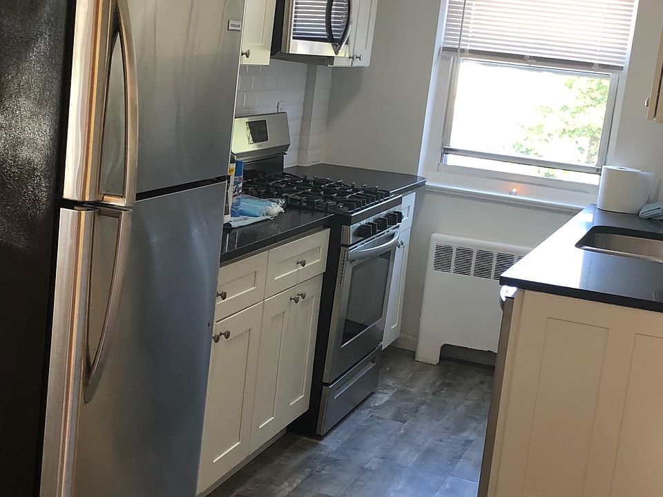 Beautifully Renovated, Extremely convenient, Rare, 1st floor unit. Pleasant, parklike setting in very well kept complex. Unit Features, Sparkling Hardwoods throughout, along with, Spacious rooms and ample closets. Large, Bright, Freshly painted LR w/appealing lighting fixture and lovely views of the court yard. Fantastic kitchen offering, steel appliances, deep double sink, subway tile back splash, granite tops and ample cabinetry. Breakfast room, open to the kitchen, can easily serve as a den or home office. Spacious, BR w/outfitted double closet. Attractive updated Bath, tiled to ceiling. Near NY Trans, Eateries, Houses of worship and Shops. Heat and Hot water included. Parking and laundry on site. 1.5 mo security deposit and 1 mo fee due upon acceptance. Credit check and application required. Additional storage may be possible. PETS considered. Hurry Will Not Last!