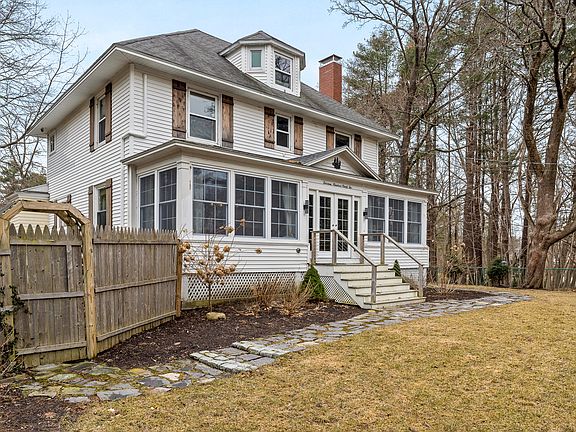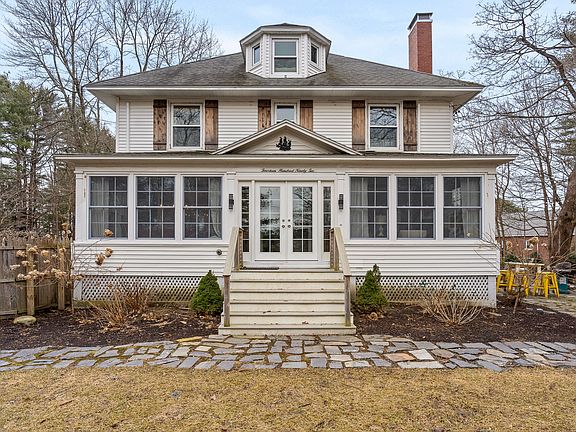Nestled on a park-like .93-acre lot, this home exudes timeless elegance and historic charm. Originally built in 1925, it has been updated to integrate modern amenities. Every detail has been thoughtfully curated to create an exceptional living experience. Throughout the entirety of the house, rich hardwood floors bestow a sense of warmth and refinement, setting the stage for comfortable living. The chef-inspired kitchen is a culinary haven, boasting pristine white cabinets, granite countertops, and open shelving, all complemented by a farmhouse sink and a striking wood ceiling with exposed beams, an ideal fusion of functionality and style. Adjacent to the kitchen, a cozy sitting (or dining) room adorned with exquisite stained glass windows offers a picturesque place to unwind. The timeless allure of stained glass continues into the living room, where a fireplace serves as the focal point. For year-round enjoyment, a four-season sunroom provides a space for dining or leisure. The adjacent den, complete with built-ins, grants access to the deck and patio, enveloped by a fenced-in backyard adorned with mature trees for added privacy. On the second level, three inviting bedrooms await, accompanied by a stylishly appointed bathroom showcasing a subway tile bath/shower combo and a modern sink. The primary suite is a true retreat, boasting dual walk-in closets and a spa-like ensuite bathroom adorned with dual sinks, an exquisite rainfall shower, and a private water closet. Ascend to the third level to discover another primary ensuite, featuring a comfortable sitting area, a walk-in closet, and a chic bathroom, a perfect sanctuary for guests or extended family. With heat pumps ensuring year-round comfort, a full daylight walk-out basement offering ample storage, and a location conveniently situated near shopping centers, malls, downtown areas, and major highways, this home blends suburban tranquility with urban convenience.