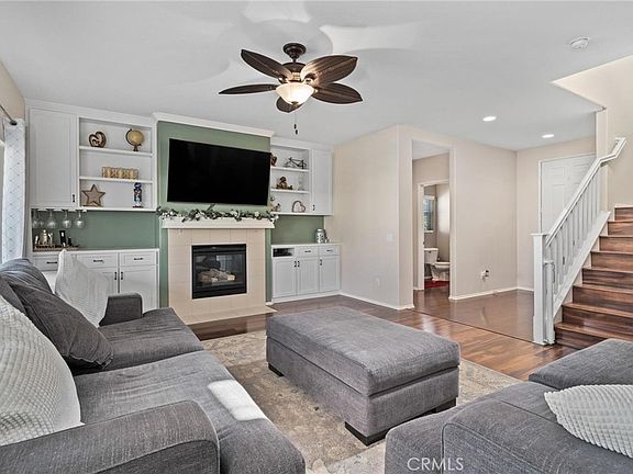 Stunning turnkey home located in the heart of Eastvale. Entertain effortlessly in this open floor plan boasting wood flooring and recessed lighting. The kitchen is upgraded with granite countertops, a large island with additional seating, stainless steel appliances and plenty of upgraded cabinets for all of your organizational needs. Get cozy in the family room flanked by a fireplace, ceiling fan and custom shelving. Moving along upstairs you will be greeted by a loft ideal for a game room or additional family room. All 3 bedrooms are located upstairs including the master bedroom showcasing a spacious en-suite with dual sinks, soaking tub and walk-in closet. The laundry room is also conveniently located on the 2nd floor. The large backyard includes a covered patio and an overwhelming amount of space for all of your future plans. You do not want to miss this opportunity, schedule your private showing today.