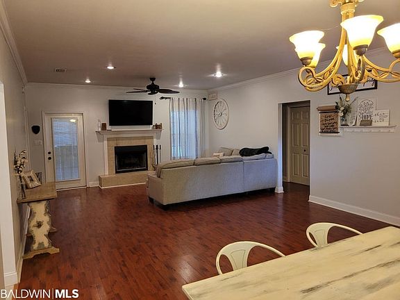 Well-maintained 3Bed, 2Bath, 1722 sqft brick home in centrally located subdivision just outside of downtown Silverhill. Home features a split-floor plan, recessed lighting, granite counter tops, wood floors in the dining, living room, and hallway. Tile in the Kitchen. Carpet in the bedrooms. Wood burning fireplace, screened in back porch, with mature oak trees providing wonderful shade throughout the property.