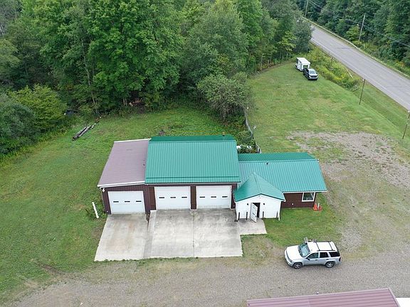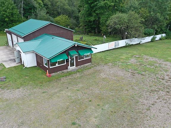 A well know business location with almost 15 acres with a lot of traffic on Route 8. The buildings have enough garage space to park more than ten cars. There is enough room in the front office for 6 desks as well. The main building has a half bath with a kitchen. Lots of opportunities for this property.