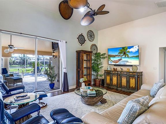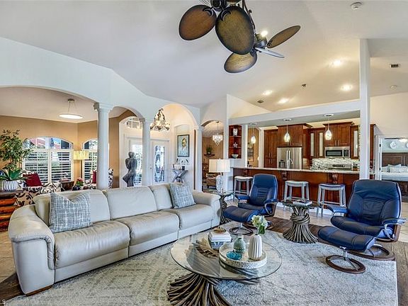 H11721 - Welcome to a 4-bedroom waterfront Masterpiece with a beautiful pool located on 1/2 an acre of land, directly facing the lake of Gulf Harbour and only minutes to Water's Edge private marina. This residence features 4,439 sq/ft TOTAL LIVING AREA, a screened-in modern salt water pool beautifully lighted at night, overlooking the lake and a lot of privacy. Owners did an exceptional job upgrading the house: Finest luxurious kitchen cabinets, very exclusive high-end countertops, Bosch and Whirlpool appliances, new wood look tile flooring, sparkling new lights, LED lights, plantation shutters throughout, upgraded freshly painted living areas and bathrooms with beautiful mirrors. Enjoy vaulted and tray ceilings and an excellent floor plan with 4 bedrooms and a 2 car garage. Water's Edge is one of Fort Myers most desirable neighborhoods. Amenities include 2 sparkling swimming pools, tennis and pickleball courts, a long fishing pier with its river-view vantage points including the occasional glimpses of manatees & dolphins at play. Close to shopping, restaurants, entertainment and Beaches. Unbeatable price / quality and low HOA fees! New impact front doors ordered and will replace current ones, new pool vac, new landscape and water feature, too many upgrades to mention.