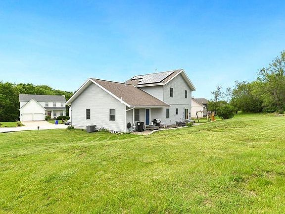 Situated on a large corner lot, this 3 bedroom, 2.1 bath 2 story home has a lot to offer. The open and light filled living room, dining room and kitchen flow seamlessly into each other. For more privacy and additional square footage, a large family room is tucked behind the over-sized 2 car garage. Rounding out the main level with 9 ft ceilings, wood and tile flooring, are a laundry room and half bath. Three bedrooms and two baths await on the second level including the primary suite with loft and walk-in closet. The unfinished basement with 9 ft ceilings, egress window, concrete storm/wine shelter and a stubbed bath has endless possibilities. Enjoy entertaining this summer on the beautiful front porch or large patio. Expect lower utility bills with the newer solar panels. A fantastic location with great highway access.