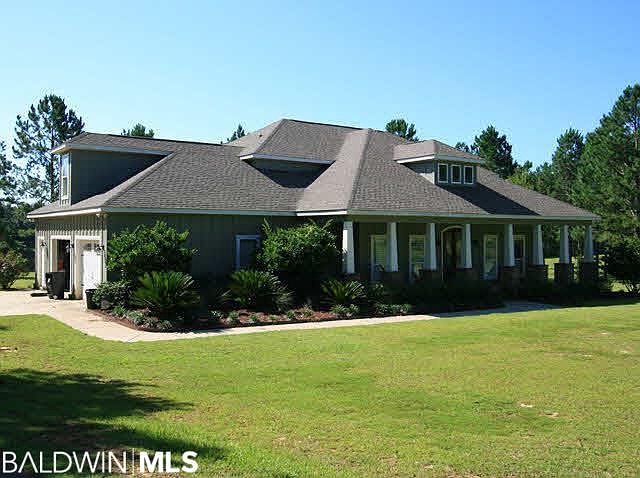Scenic 20 Acre Fairhope Estate w/5 acre fishing stocked lake. Large trees nice, breezes, open spaces, & surrounded by other acreage. Near Fish River. This home is a warm & inviting upscale country estate. Hardwood floors, huge well equipped kitchen w/desk & bar, soaring ceilings, w/expansive views of lake. Generator & Theater ready. Bring Horses. Office, King Master Suite, laundry chute, rec room.