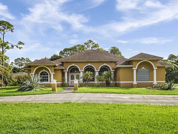 Over 3100 sq ft under air in this gorgeous 4 Bedroom/3 bath CBS home on almost 2 acres in Loxahatchee! Open living concept - great for entertaining! Granite kitchen with beautiful cherry cabinets, island and stainless steel appliances- including a double oven! Other features include trey ceilings, arched doorways, a Reverse Osmosis system and diagonal Tile flooring throughout! Washer and Dryer included!