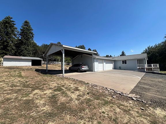 Excellent 1 acre property near Keno. Well maintained 3 bedroom 2 bath home with a freshly painted interior, outside deck, rails & front fence. Cute front porch leads you into the living room with laminate flooring & ceiling fan, kitchen & dining room on the right, all new appliances will stay. Primary has full bath, walk in closet, & slider out to deck. Two more bedrooms with laminate flooring, one has slider out to deck as well. Full bathroom off hallway with shower tub combo with skylight for additional lighting. Laundry room off garage with skylight as well. Deck has plenty of room & would be perfect for entertaining. Property is fully fenced with many trees including cherry, apple, plum, spruce, poplar & pines. Plenty of room for all your toys with an attached 3 car garage with additional attached carport big enough for an RV & boat. Outdoor space has some landscaping but is really a blank canvas ready for new owners to love. Additional storage shed or animal shelter out back.